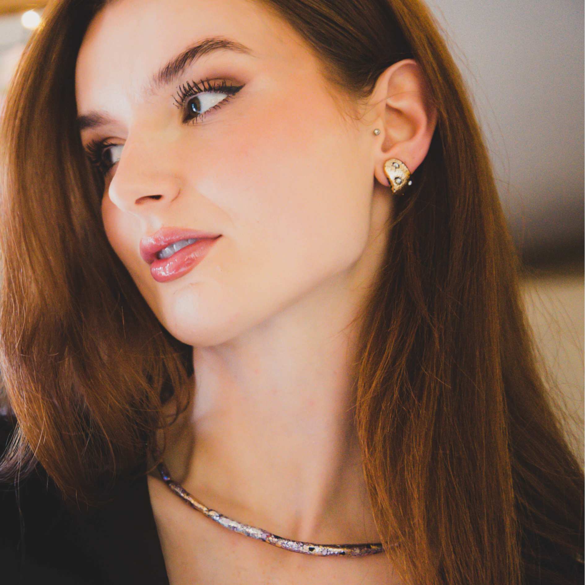 A bold expression of feminine strength, this handcrafted necklace is made from clay-covered wire that gently bends to the natural curve of your neck. Designed to represent breaking cycles and stepping into transformation, each piece is infused with silver, gold, and lilac foils and glitter — symbolising light, evolution, and personal power.