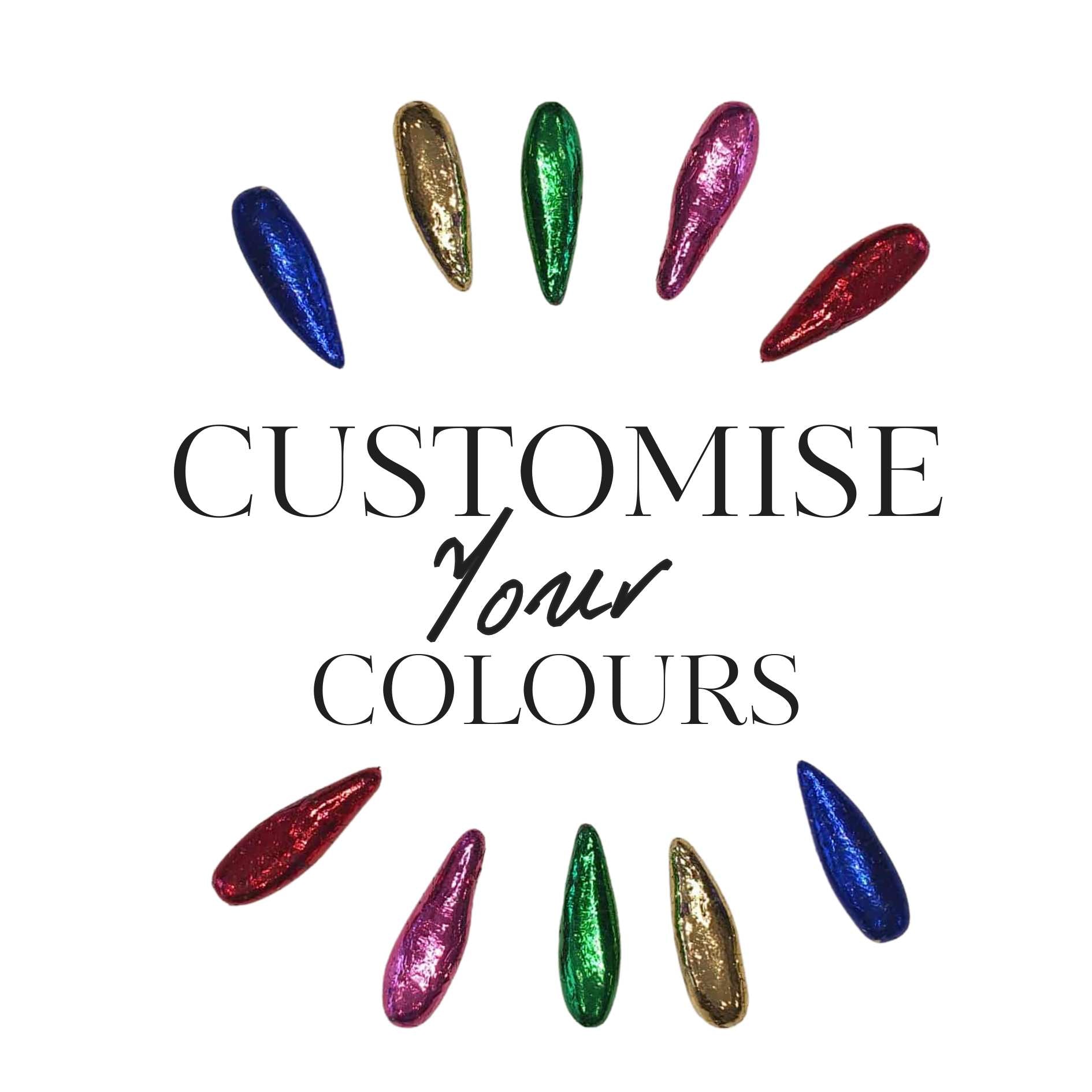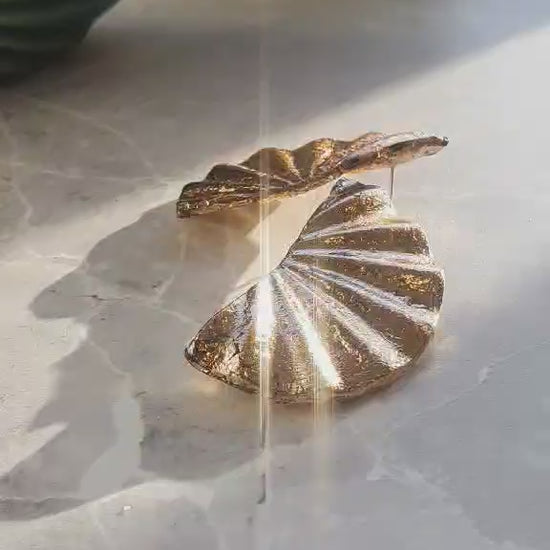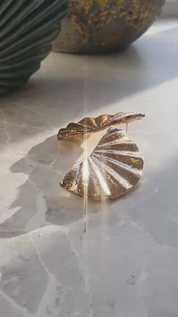 Delicately handcrafted from premium black polymer clay, the Flutter Earrings are a striking blend of contrast and texture. Each piece is thoughtfully molded and pressed with shimmering coloured foil leaf, creating a bold interplay between darkness and light. The deep black clay symbolises stillness and depth, while the radiant foil captures movement, light, and transformation — like a flicker of hope in shadow. Lightweight yet eye-catching, these earrings offer a modern, artistic statement perfect for any occasion.